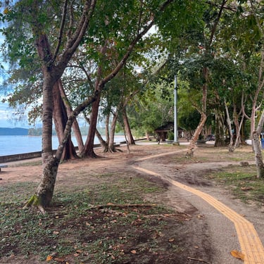 The walk can begin right down at the Landmark Night Market, either by pavement or beach. You'll see runners, walkers, families having picnics under the trees. Eventually the pavement becomes a dirt path leads through casuarina groves. It’s shaded and quiet although depending on time of day and season you may encounter the island tour meeting points and the bustle of tourists locating their boats. The tall trees give the walk a softly, shaded forest vibe. From here you can dip back onto the beach at various points, or follow the walkway that runs parallel to the shore, past simple shelters and resting spots.
