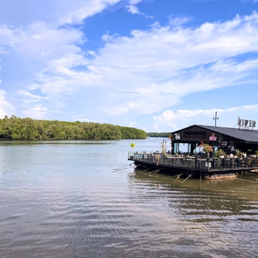 Chao Fah Park isn’t a park in the usual sense — more a long, grassy promenade that runs beside the Krabi River. What it lacks in greenery it makes up for in atmosphere, with open views across the water to the mangroves, fishing villages, and mountains beyond.