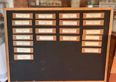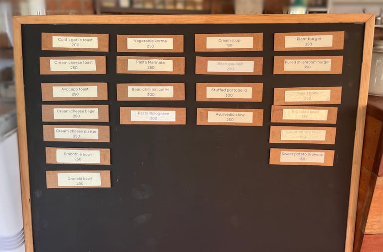 There’s no printed menu — just a pinboard of dishes that can change daily, shaped by what’s fresh, what’s available, and what he feels inspired to cook. He welcomes requests and loves to tailor meals to your mood or taste. The result is loose, abundant, and deeply authentic to his values — no nonsense food that reflects both freedom and soul.