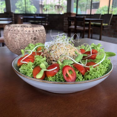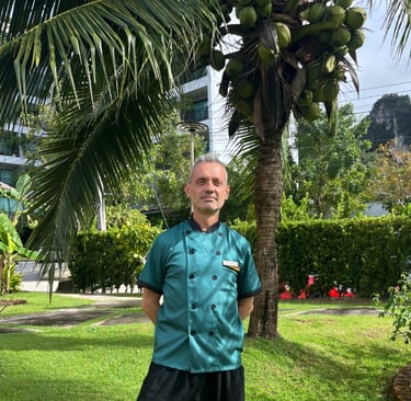 Sharing his new passion and knowledge by cooking for friends and delivering homemade meal boxes, gradually evolved into a calling. In 2019, he was invited to open a restaurant at Anana Ecological Resort, and in 2024 he moved it into its own sala on the resort grounds, surrounded by the organic garden that now fuels his menu.