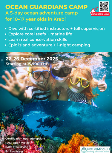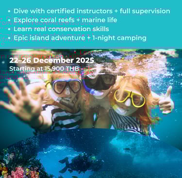 A five-day marine adventure in Krabi for young explorers ready to dive into the underwater world. Campers learn real ocean conservation skills, snorkel vibrant coral reefs, join certified instructors for supervised dives, and head out on an epic island expedition with an overnight camp under the stars. An unforgettable journey into Thailand’s marine wilderness.